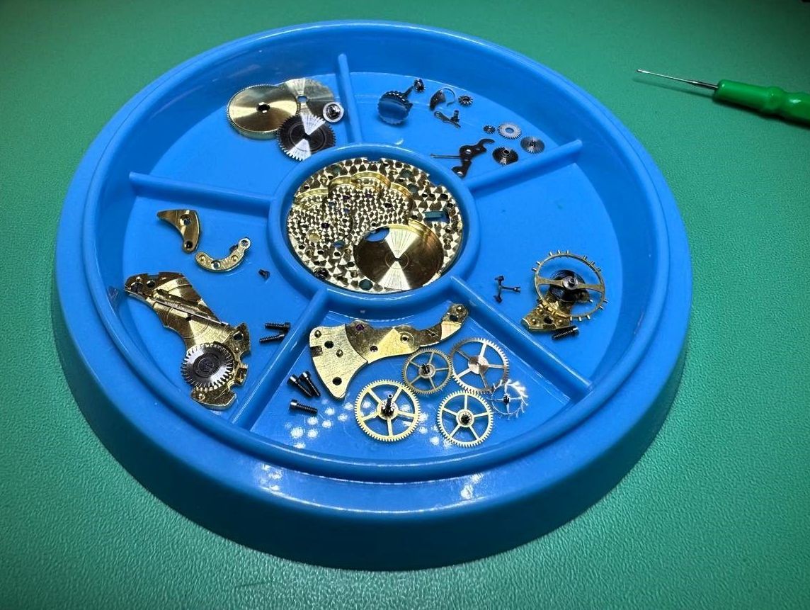 I meticulously disassemble the watch, ensuring that each part is handled with the utmost care. Once separated, each part is checked for damage (replaced where required) and then undergoes a thorough cleaning process using specialized solutions and ultrasonic technology to remove any dirt, oils, and impurities. This detailed cleaning process ensures that every part is pristine and ready for precise reassembly, contributing to the optimal performance and longevity of your timepiece